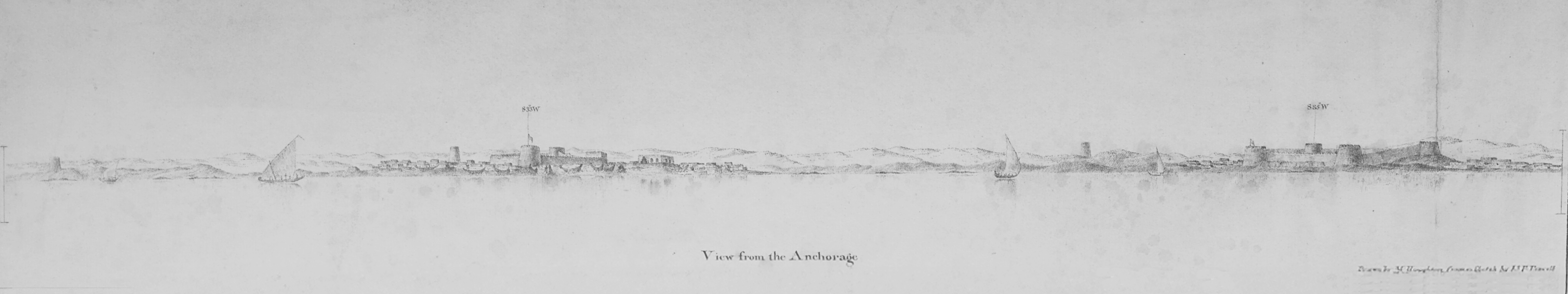 That map was superseded by a map presented in 1830 by Captain Brucks at the direction of the East India Company, and which is shown here. The 1823 map was drawn by M. Houghton, and both maps, now in the British Library, give an indication of the length of time some ships of the Indian Navy, or Bombay Marine, spent in the Gulf carrying out their duties. One of the most important of these being the surveying of the coasts. Bear in mind that the French were significantly ahead with their cartographic work through the work of the Cassini family, and that accurate maps are necessary not just to navigate safely, but in times of war. Captain Guy of the ‘Discovery’, Captain Cogan of the ‘Psyche’, Captain Brucks of the ‘Teignmouth’ and Lieutenant Haines of the ‘Benares’ were the officers responsible for much of this mapping.